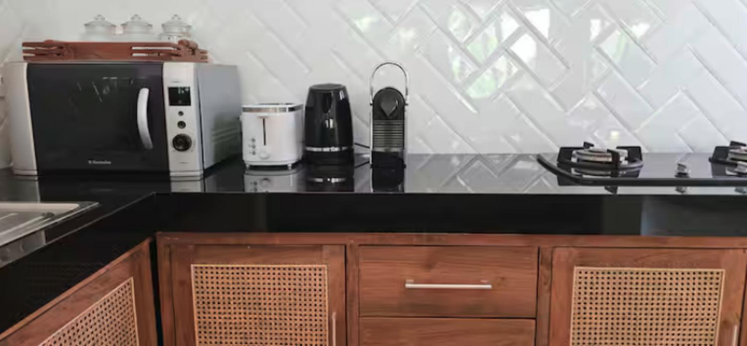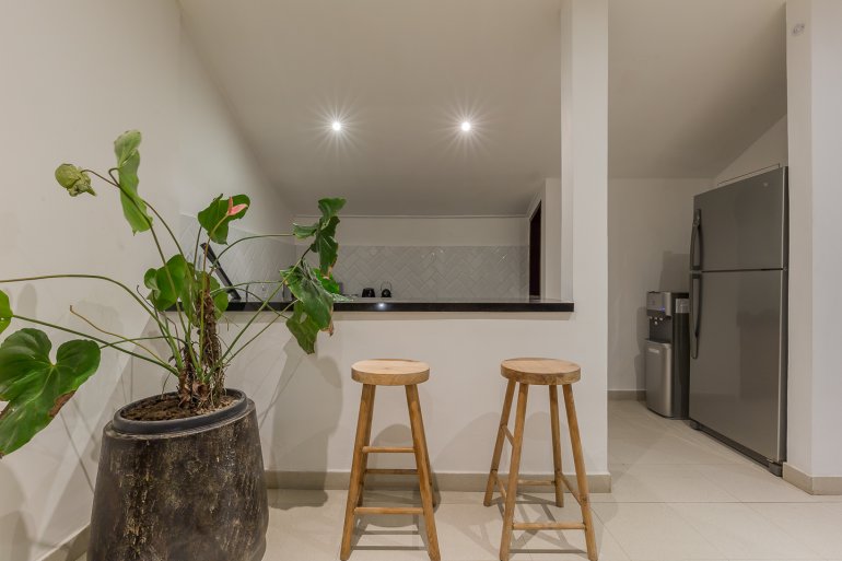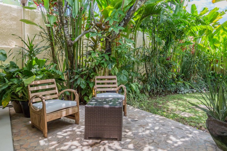 The interior architecture is fused with colonial elegance and modern furnishing for a true tropical setting. On the living room, there is a flat screen TV and DVD player and a large comfortable couch to lounge on. There is both an indoor and outdoor dining area to allow you enjoy the fresh breeze from the tropical garden.